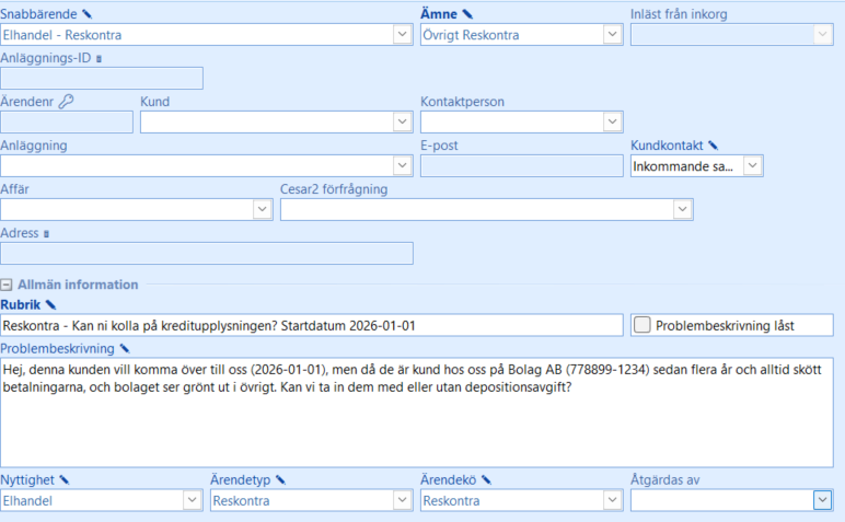 Rubrik: Kan ni kolla på kreditupplysningen start datum xx/xx.