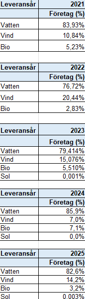 Energifördelning till våra företagskunder under givet år.