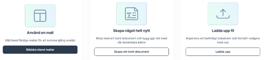 1. För att ladda upp ett dokument, klicka på ”Skapa” i det övre vänstra hörnet av sidan. Välj därefter alternativet ”Ladda upp fil”.