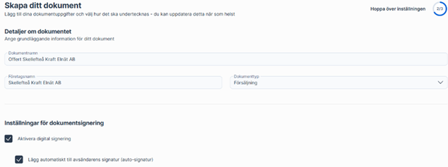 3. Ange dokumentnamn samt företagsnamn och fortsätt därefter till nästa steg.