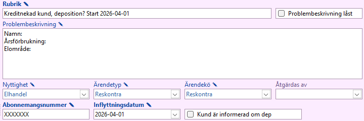 Följande information ska vara med när vi skickar ett ärende till reskontra: