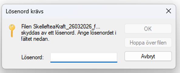 2. Du skickas till din utforskare där filen ligger, klicka på filen. När du klickar på filen visas ett meddelande om att lösenord krävs. Ange lösenordet ”elsklingS35” för Elskling.