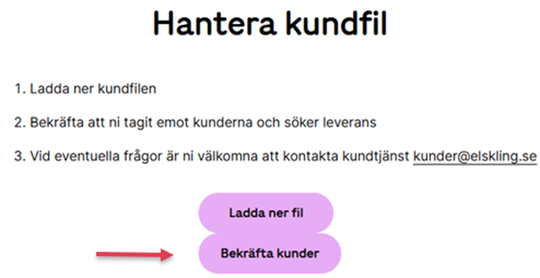 Efter att avtalet är tecknat klickar ni där det står "den här länken", ni kommer då till denna sida och klickar på "Bekräfta kunder"