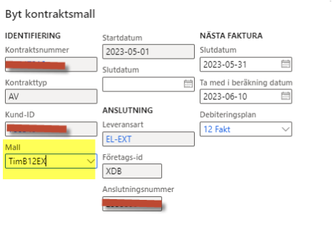Klicka på ”Byt kontraktsmall”