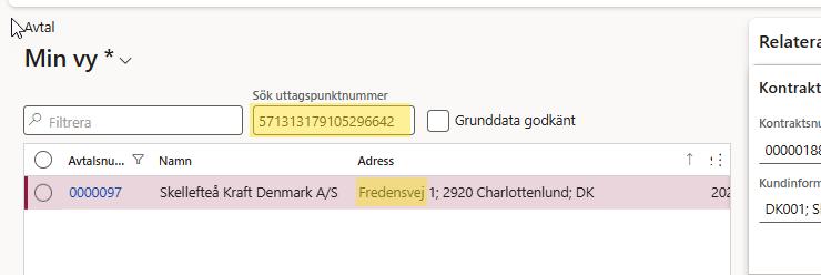 Gå till alla avtal i danska D365 och sök fram anläggningen