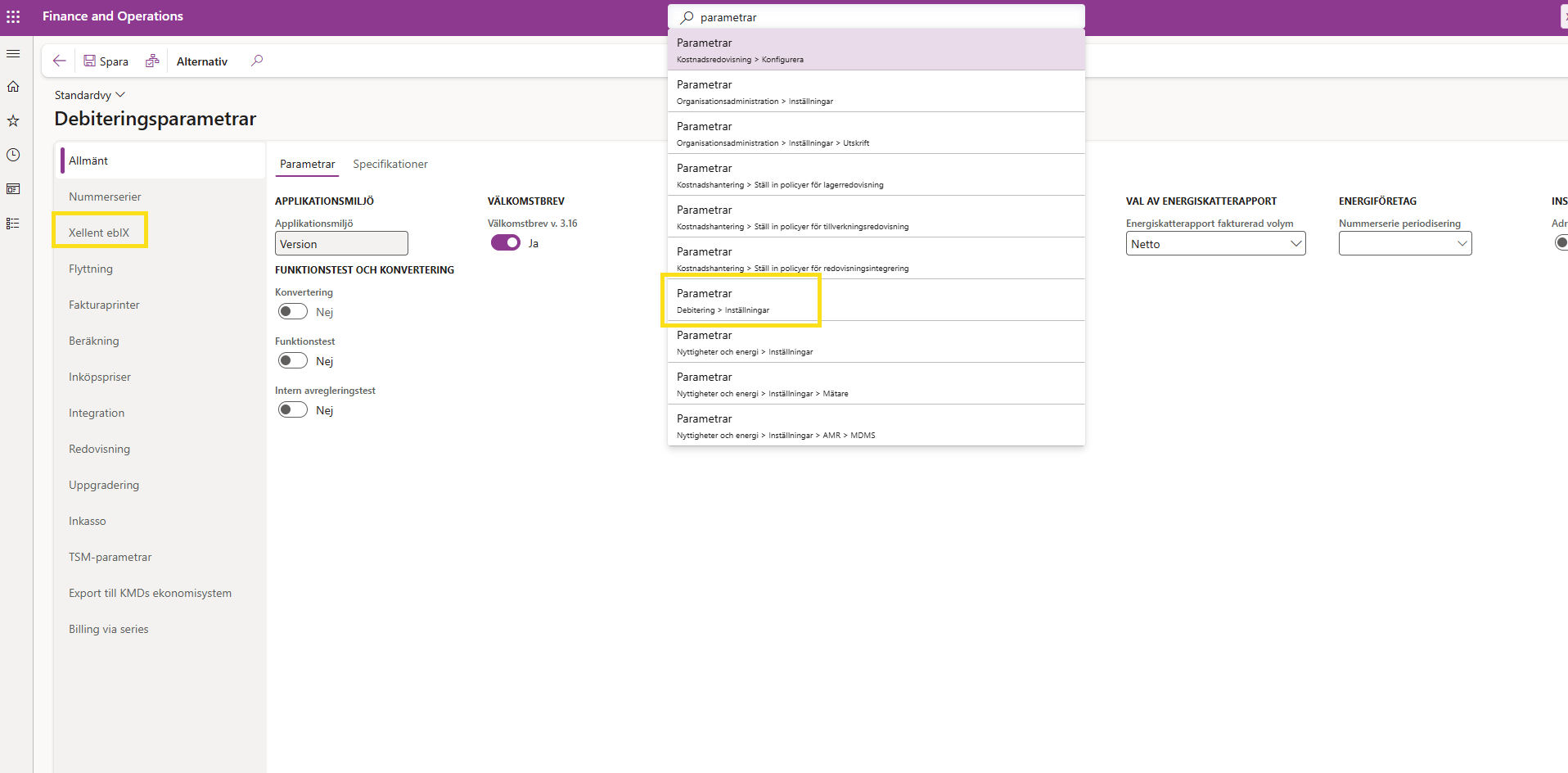 Man kan lägga till dessa på följande sätt- gå till Parametrar via Debitering och Inställningar. Välj sedan Xellent eblX.