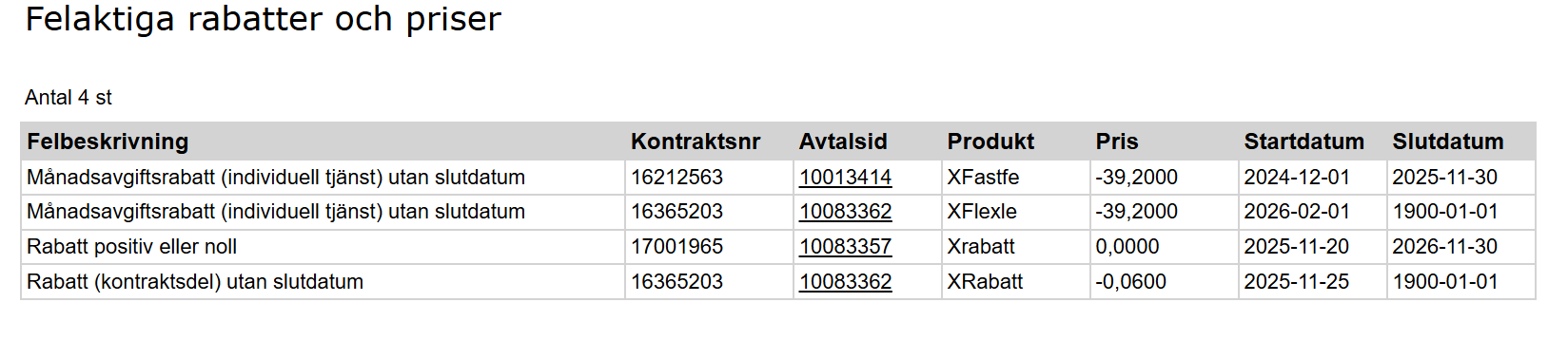 Här visas kontrakt där rabatter och priser inte stämmer med vad som finns i avtalet.