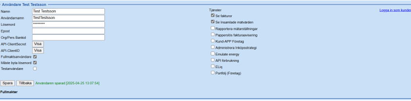 Klickar man nu på Logga in som kunden som hoppar man ut till mina sidor och kan se där vad kunden kan se.