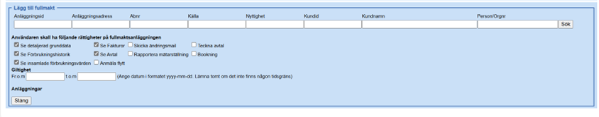 Här kan man välja vad man vill lägga till på fullmaktsanvändaren.