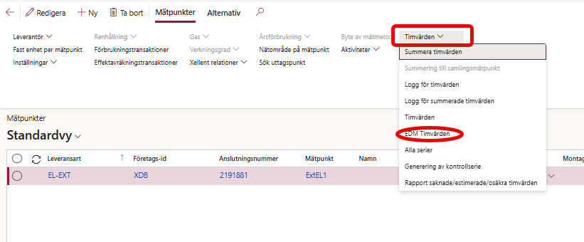 4. Välj EDM timvärden under fliken Timvärden.