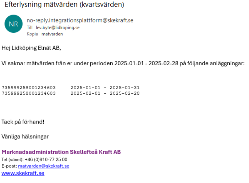 Ifall mätvärden har korrigerats för mer än ett år tillbaka från dagens datum ska mejlet vidarebefodras till kundarendefaktura@skekaft.se
