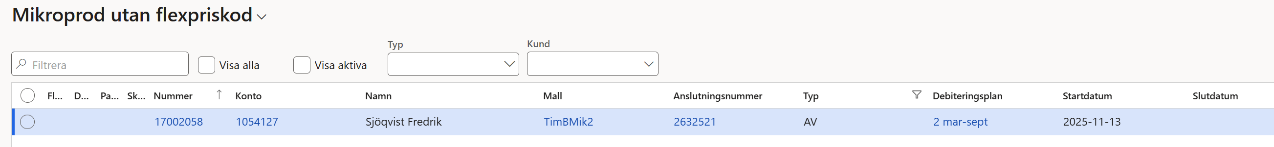Här kan du se vilka kontrakt som saknar flexpriskod. Öppna kontraktet genom kontraktsnummerlänken.