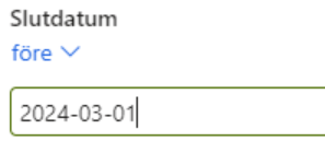 Nästa fakturas slutdatum= Mellan: 2000-01-01 - Första dagen i pågående månad