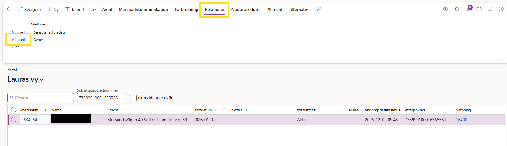 Rätta på mätpunkten och hör av dig till din kollega som jobbar på företagssidan på MKA så att det rättas i FOA och portföljer också.