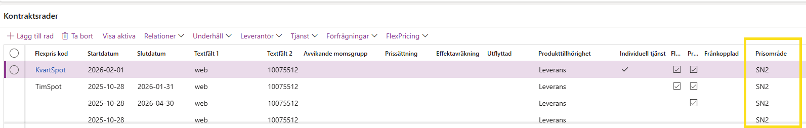 Kontrollera under kontraktsraderna i kontraktet att det blev rätt: