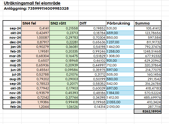 MKA rapport- Elområde och nätområde missmatchar på mätpunkten
