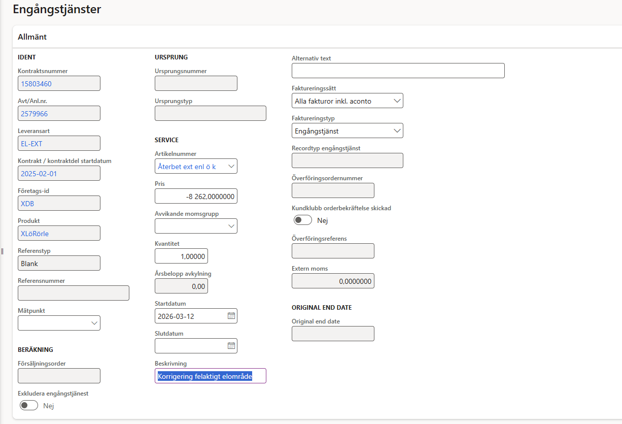 Vi har upptäckt ett fel mars 2026 om att elområdet inte korrigeras när vi söker om en avvisad sökning pga fel nätområde, samt att D365 i vissa fall inte ens reagerar på att det är fel elområde. Är det en mikroproduktion behöver du bara rätta elområde, ingen kompensation behöver räknas på.