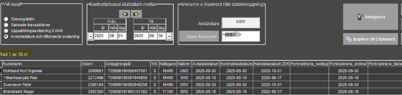 Då kommer det sedan komma upp vilka nätbolag som vi behöver efterlysa mätvärden till. Nätbolagen är gulmarkerade.
