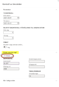 Klicka upp rubriken ”Poster som ska ingå” och klicka på Filtrera.