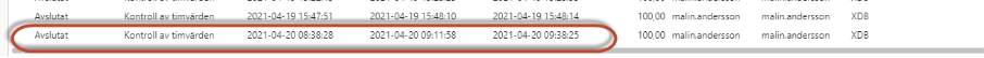 Steg 1 Kontroll av timvärden: