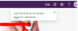 När du klickat på OK kommer en notis uppe i högra hörnet.
