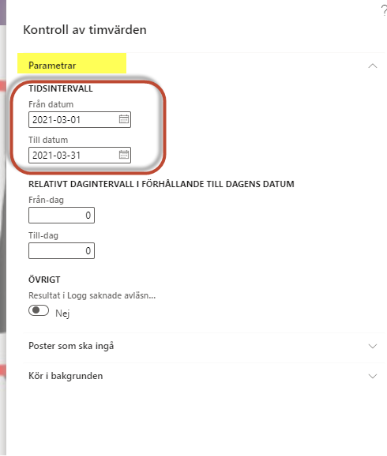 Fyll i perioden som ska efterlysas under rubriken ”Parametrar” - Tidsintervall.